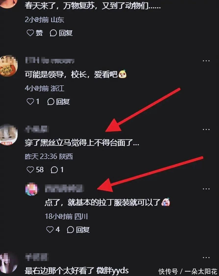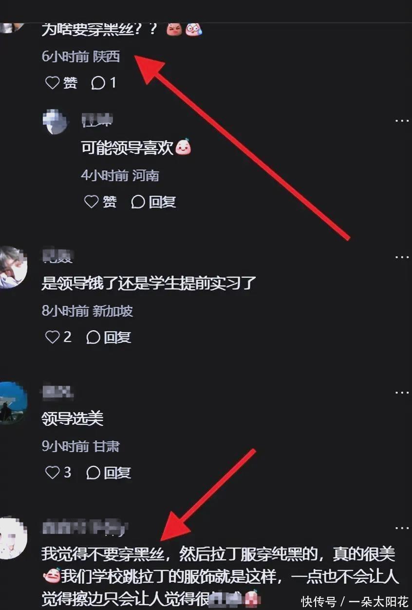 但是就由于她们腿上套着这个紧紧的黑色的丝袜,一下子就把整体水平弄的不对了。看到那个黑色的袜子,家长们纷纷皱起了眉头。